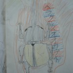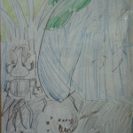 福西です。ことば1~2年クラスに来ている、1年生のA君が、お家で描いてきてくれた絵です。力作です。授業の始まる前に見せてくれました。「見せたい」と思って、わざわざ描いてくれたのでしょう。絵が、彼の「ことば」なのだなと思いました。